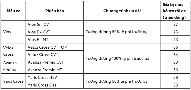 Chương trình áp dụng khi mua mới một số dòng xe do Toyota Hưng Yên phân phối chi tiết như sau: